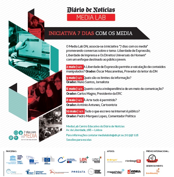 No âmbito da Operação “7 Dias com os Media” o Media Lab do Diário de Notícias, projeto de Literacia dos Media implementado pela Brand Meaning, vai promover, entre 3 e 10 de Maio, sessões de debate entre estudantes e personalidades de referência.